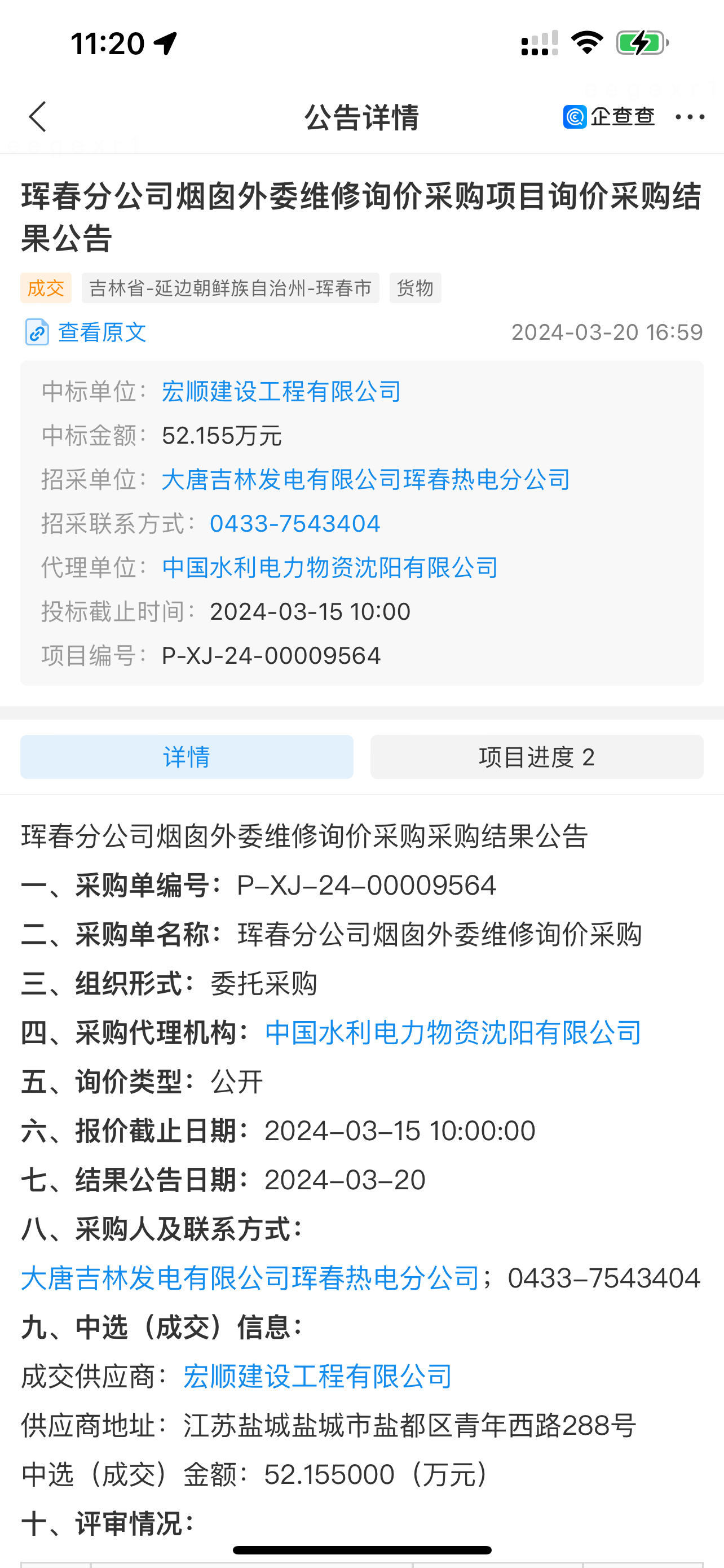 熱烈祝賀我公司中標(biāo)大唐吉林發(fā)電琿春熱電的煙囪外委維修工程